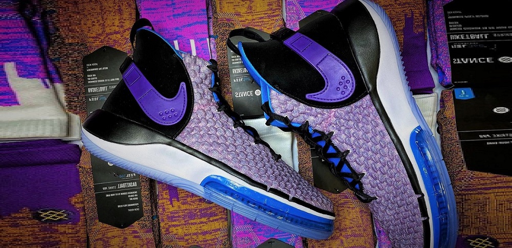 當年Chris Webber 在球場上穿著的鞋款Nike Flight Huarache以淡藍色、紫色為主要色調。Alpha Dunk本次的色調便是依此而來。